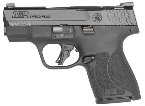 The M&P Shield Plus is extremely thin and lightweight and can be comfortably carried all day. It features the M&P's patented take-down lever and sear deactivation systems all for disassembly without pulling the trigger; flat face trigger for consistent trigger finger placement which allows for more accurate and repeatable shooting; enhanced grip texture allows the user to manage recoil, keep a firm grip and delivers comfort when concealing; optimal 18-degree grip angle for natural point of aim and Armornite durable corrosion resistant finish. Includes two magazines.